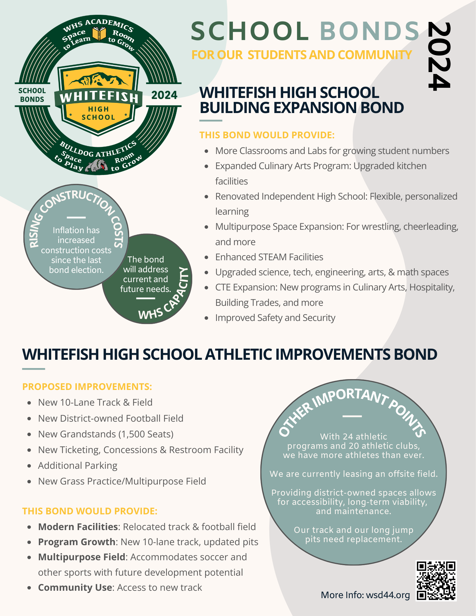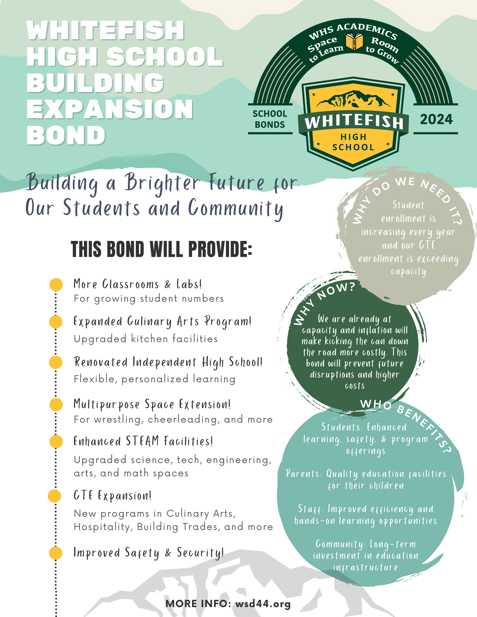 The key to passing these bonds was communicating clearly to the Whitefish community. Given the original bond (before it was broken into separate bonds) failed just a year earlier, it was important to communicate that public concerns were heard, adjustments were made, and the future success of the high school and its students depended on addressing growth and student needs.
